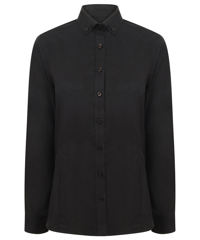 Henbury Women's modern long sleeve Oxford shirt - Black / XS is backordered and will ship as soon as it is back in stock.