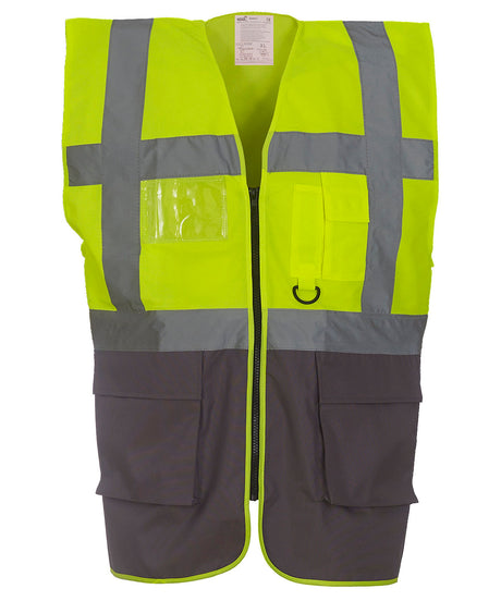 Yoko Multifunctional Executive Hi-Vis Waistcoat Yellow/Grey