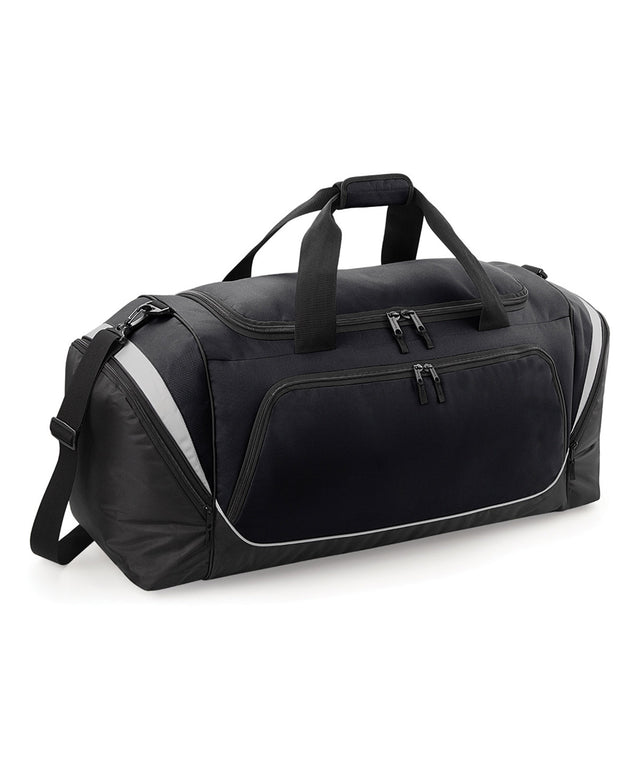 Front pocket designed for easy decoration. Large main compartment. Two large end pockets. Internal valuables pocket. Internal mesh pockets. Water bottle holder. Detachable adjustable shoulder strap with pad. Padded hand grip. Internal baseboard. Protective base feet. Reach certified.