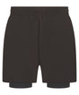 Men’s double-layer sports shorts with four-way stretch. Microfibre top short and polyester interlock under short. Side zipped welt pockets. Self-fabric elasticated waistband with inner drawcord. Side vents. Integrated under short. Phone pocket on under short, right-hand side when worn with media access. WIcking properties on under short. Tear-out label. Resealable, recyclable bags made from 100% recycled plastic. amfori BSCI certified.