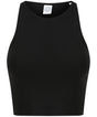 Sleeveless cropped top, with a fitted neckline that's ultra flattering on the shoulders. High fashion. High impact. Tear-out label for easy re-branding.
